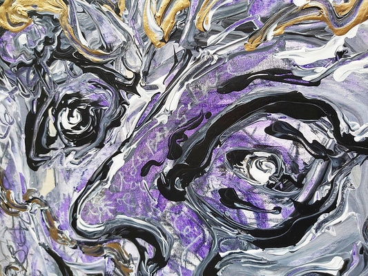 My creative process for abstract art is an intuitive dance between body and mind, born from deep introspection. Inspiration emerges from within, like a light breeze inviting me to dive into the present moment. Each canvas begins with a background, a blank field that I seed with layers of paint, one after the other, until the colors blend harmoniously, guided by a mysterious flow.