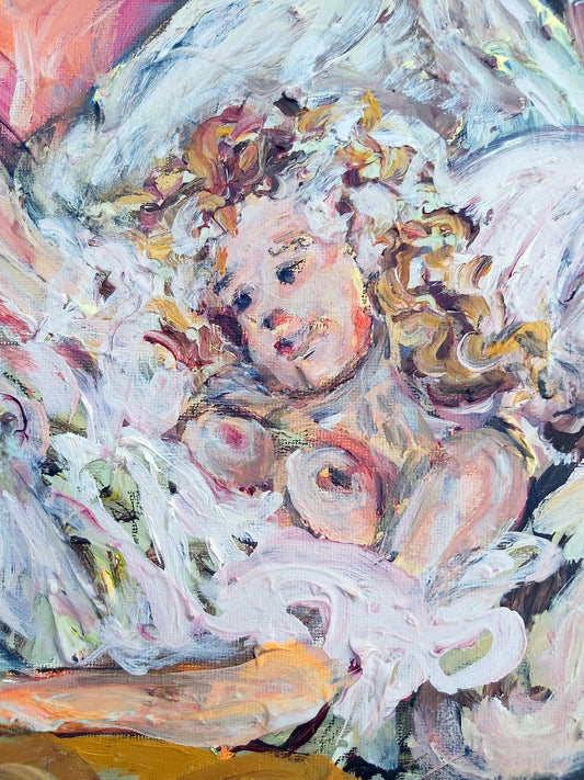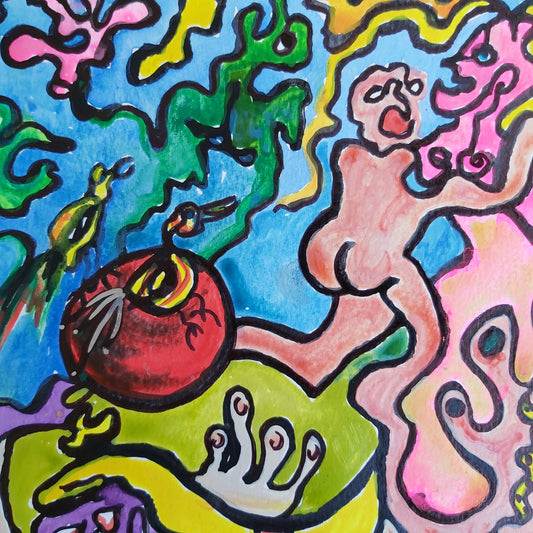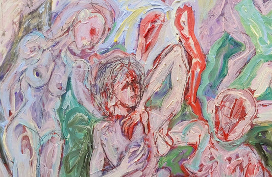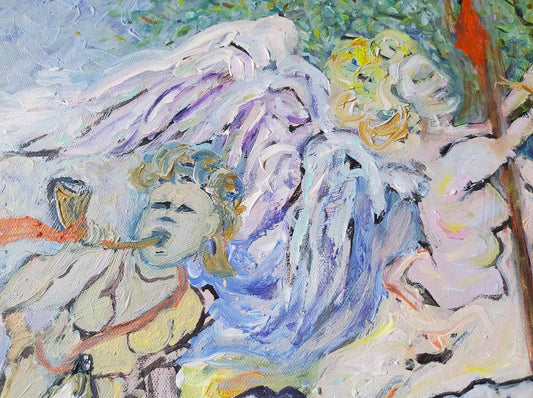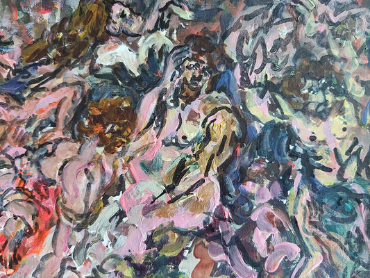 The "Humans Landscape" series by Audrey Néron draws inspiration from the works of great masters from past eras, continuing an artistic conversation through a contemporary lens. This series explores the interaction between human nature and mythological and surreal elements. Each piece invites the viewer on a visual journey, blending abstraction and figuration to express timeless themes of transformation and chaotic beauty.