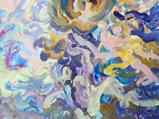 The "Humans Landscape" series by Audrey Néron draws inspiration from the works of great masters from past eras, continuing an artistic conversation through a contemporary lens. This series explores the interaction between human nature and mythological and surreal elements. Each piece invites the viewer on a visual journey, blending abstraction and figuration to express timeless themes of transformation and chaotic beauty.
